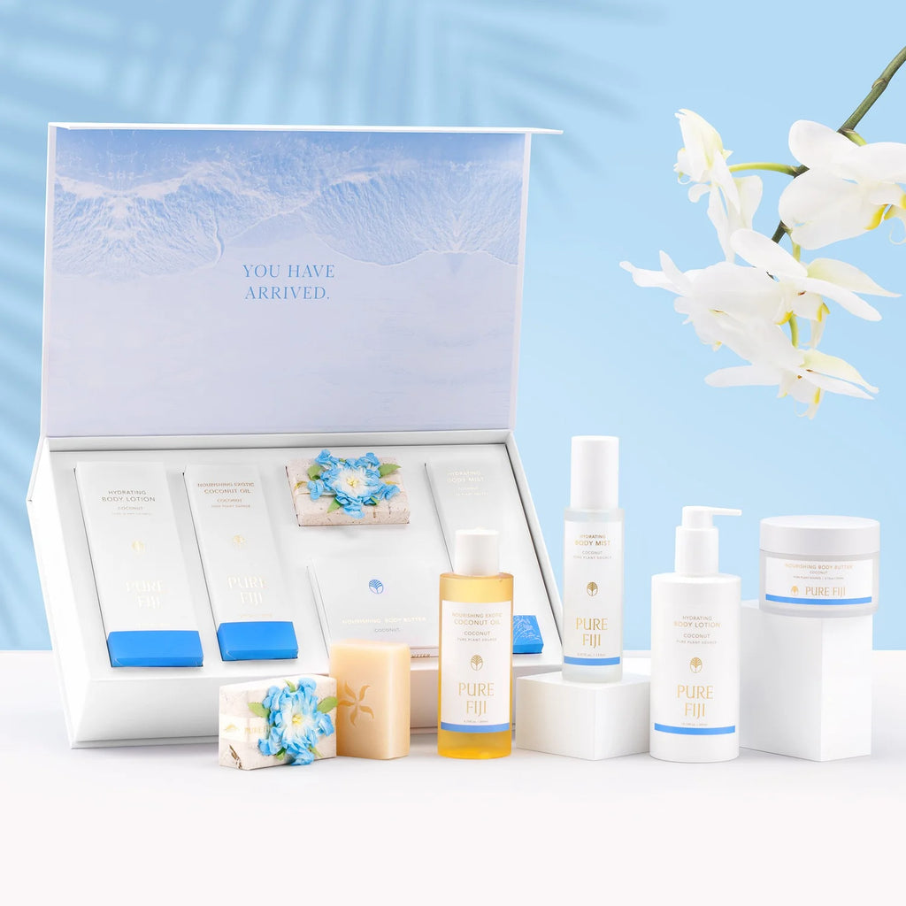 Concedetevi una fuga tropicale definitiva con il nostro Paradise Gift Set, una lussuosa collezione di prodotti essenziali per la cura della pelle ispirati all'isola. Coccolate la vostra pelle con la nostra Lozione Corpo Idratante (300 ml) per un'idratazione che dura tutto il giorno e nutritela in profondità con la ricchezza esotica del nostro Olio Esotico (230 ml). Rinfrescatevi e idratate con l'aroma tropicale del nostro Body Mist (150 ml), mentre il delizioso Burro Corpo (200 ml) offre un'idratazione intensa e morbidezza. Completate la vostra esperienza paradisiaca con il nostro Sapone di Lusso (110 g), formulato per detergere e nutrire. Questo set aggiunge un tocco di lusso isolano alla vostra routine quotidiana.